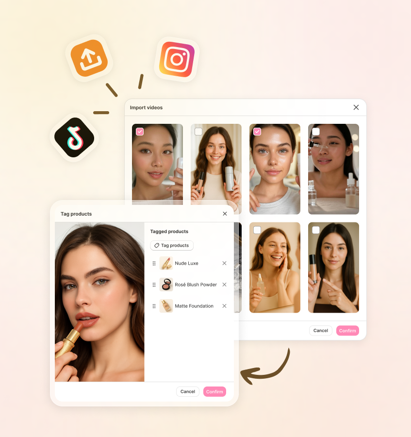 Import your UGC and brand videos and attach them directly to products.